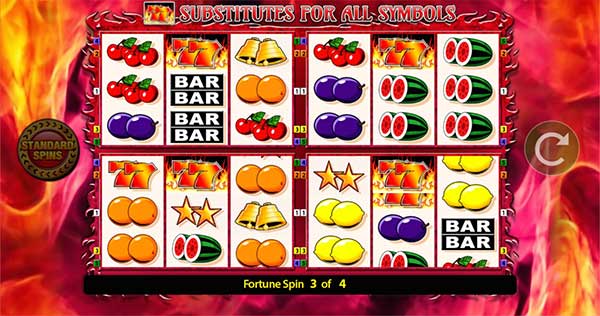 A Fortune Spins, popularizada pela primeira vez no slot de sucesso do Blueprint, o The Irish, permite que os jogadores experimentem a jogabilidade de luxo dos 7 em quatro cilindros, define simultaneamente quando ativados em 20x BET.